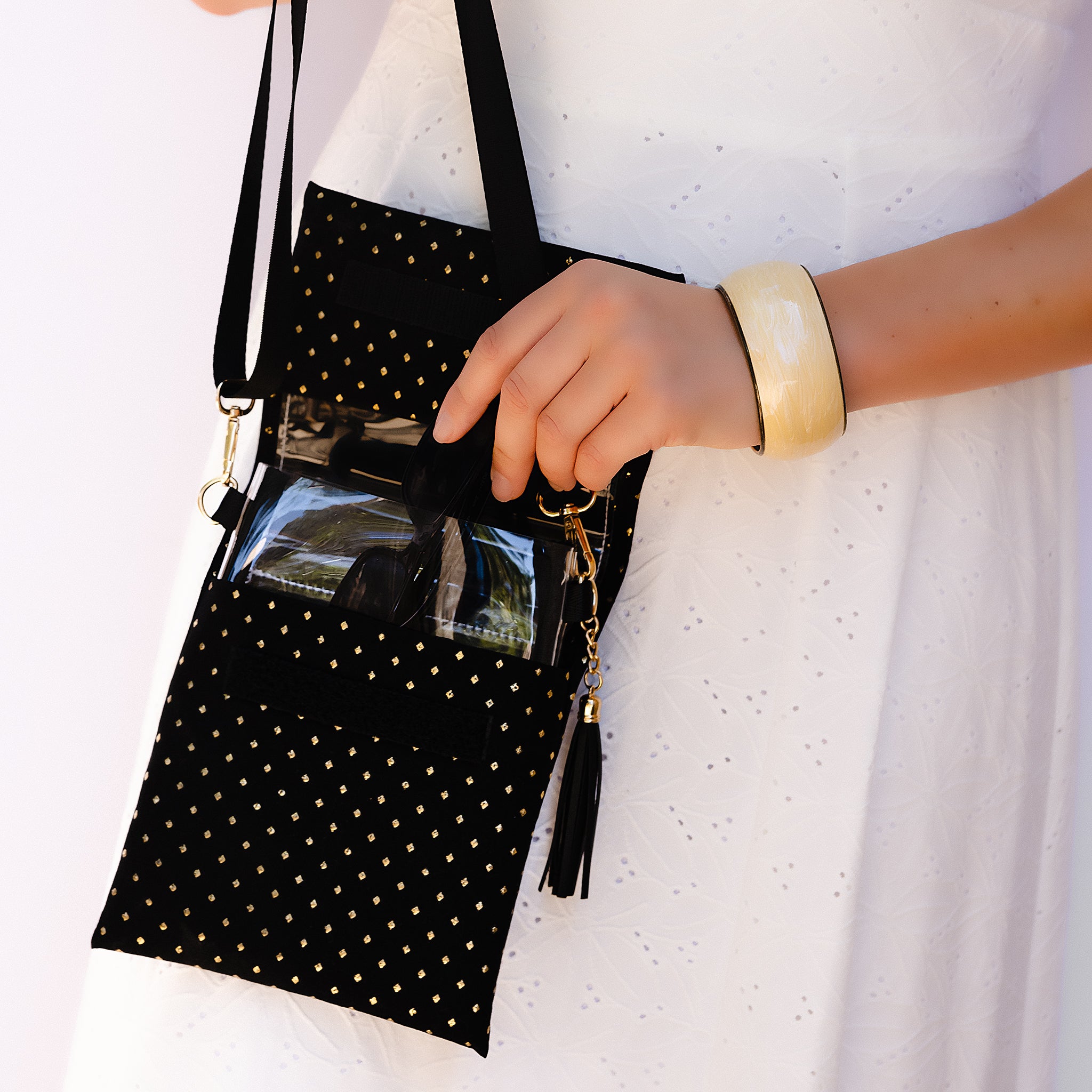 "I absolutely LOVE having a bag that is clearly stylish! It’s not reasonable to go to events without taking a few necessities along. But in this new era - we don’t have a choice. It’s - no bag - or a clear bag that lacks pizazz. My Sassy Bag checks all the boxes!" - Andrea H.